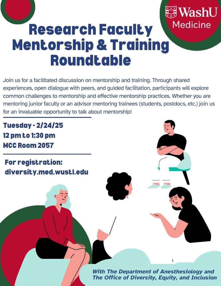 The Faculty Discussion Group on Mentorship and Training brings together research faculty to build community and strengthen their approaches to mentoring trainees. Through shared experiences and open dialogue with peers, participants will explore effective mentorship practices and common challenges. Guided facilitation will help faculty reflect, learn, and develop strategies to support strong, productive training environments. All are welcome to attend!
